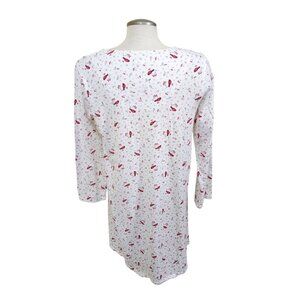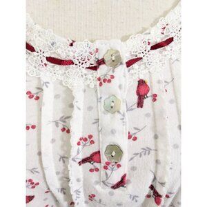 Aria Nightgown Womens M White Red Cardinal Soft Fleece Long Sleeve Grannycore