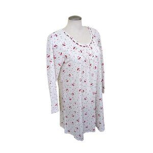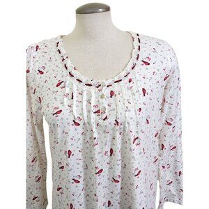 Aria Nightgown Womens M White Red Cardinal Soft Fleece Long Sleeve Grannycore