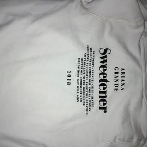 Adorable Ariana Grande hoodie very very comfy, material is soo good, great In winter, has writing in the back, a bit stains but if you wash it will come out right away, barley worn, quite good condition. Shipping $12-15