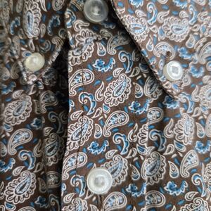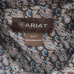 Ariat Mens Brown With Blue Paisley Casual Button Down Shirt Size Small