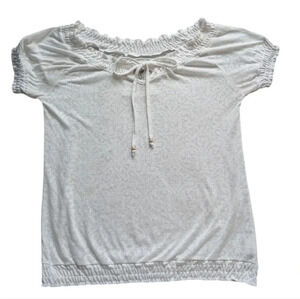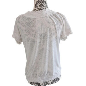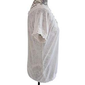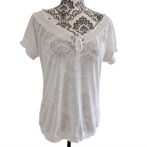 Ariat Tee Shirt Ruffles Wide Neck Sheer White Short Sleeves Women's size Small