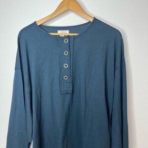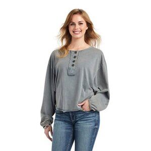 Ariat Women's Pinon Crew Neck Long Sleeve Henley Top Blue Western Size XXL