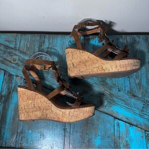 Intricate beading couples with on-trend fringe in one chic cork wedge sandal.