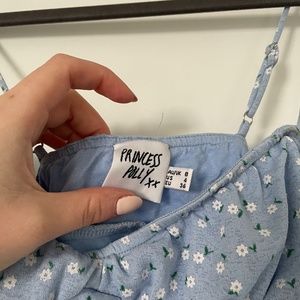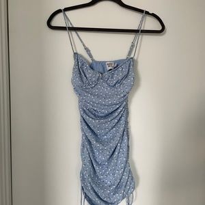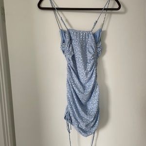 Sold out on Princess Polly. Size US4 (small). Blue mini dress, adjustable strap, stretchy material, adjustable ties on the side.