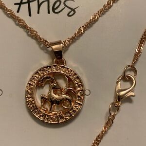 Aries Pendant on 19” Chain in Rose Gold Color