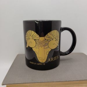 Aries Zodiac Coffee Mug Black Gold Ram Astrology Cup Mar 21 - Apr 19