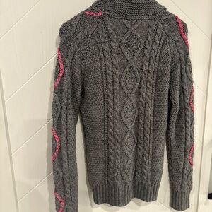 Aritiza TNA Gray and Pink Women's eclectic grandpa style cable knit Sweater