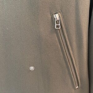 Stylish olive green jacket perfect for any occasion. Features a sleek design with zippered pockets for added functionality. Light weight, perfect for fall. Like new condition