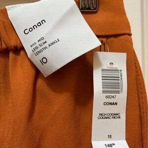 These are a new pair of Babaton Conan ankle pants in size 10. The colour is a beautiful rich cognac. They have a mid rise and slim leg. The original price was $148