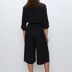 These are wide-leg, cropped pants with an easy, relaxed fit. They're cut from a smooth fabric that glides against your skin.
