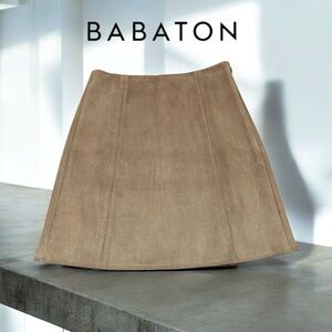 Aritza Babaton, Modern Mini Faux Suede Skirt, Size 0, Light Tan