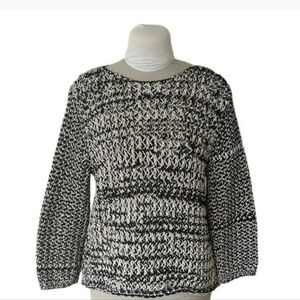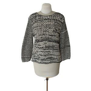 This is a chunky knit open stitch sweater in a black and white marl cotton blend knit by Aritzia's 1-01 Babaton line.