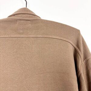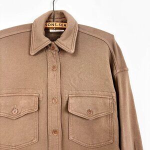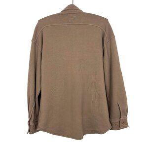 This Aritzia Azure Skies button-up shirt jacket, also known as a shacket, comes in a versatile Shitake Green. Made from Free Terry Fleece, a drapey and midweight organic cotton French terry, it’s the perfect relaxed-fit piece for layering. With dropped shoulders and functional patch pockets, this shacket offers both comfort and style. In excellent condition, and closer to the store photo in color.