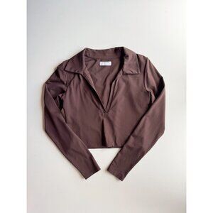 Aritzia BABATON Contour Brown Jersey Polo Long Sleeve Waist T-Shirt, Size M
