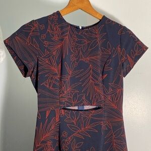 Aritzia BABATON Navy & Red Printed Prosper Cut Out Dress Size 2