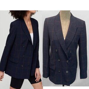 Aritzia Babaton Samuel Double Breasted Check Blazer Size 4 Navy Red