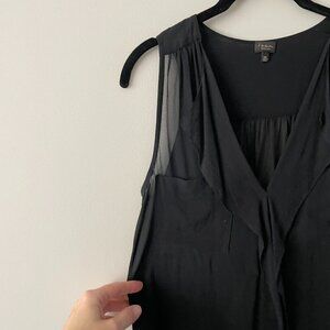 Aritzia Babaton Ainsley V-Neck Sheer Sleeveless Silk Pullover Blouse Black XXS