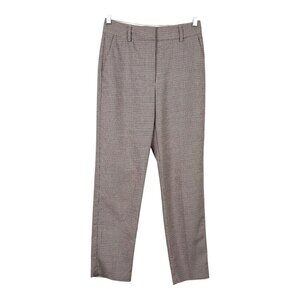 Aritzia Babaton Atelier Walker Houndstooth Ankle Pants. Beige & dark pinkish red mini houndstooth pattern. Zip button and hook close. Unlined. High rise. Two slash front pockets. Fake back pockets. Extra button included. Materials: 52% Polyester, 24% Viscose, 22% Wool, 2% Elastane. Small bit of stretch. Missing belt. No other known flaws.