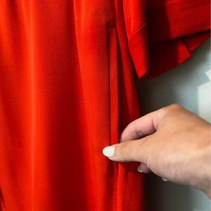 It has a plunge neckline and the length reaches mid thigh. You can tighten the waist to your comfort while still maintaining a flowy silhouette.