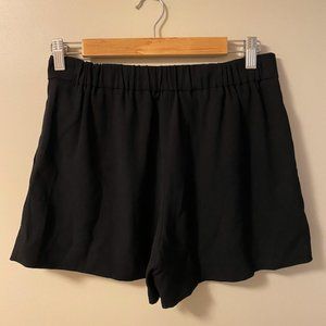 A flowy loose fit yet sleek, classy, neutral minimalist deep black high-waisted trouser short.