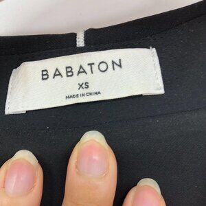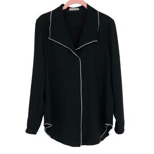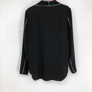 Aritzia Babaton Black Rena Satin Classic Blouse white trim XS
