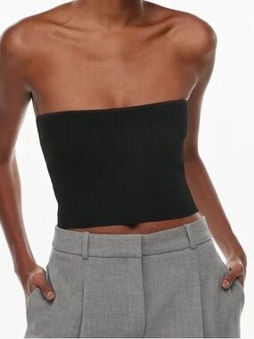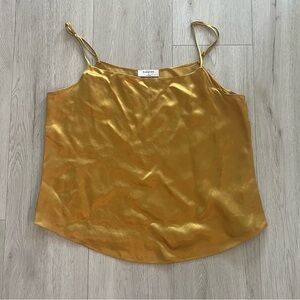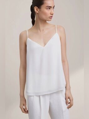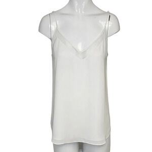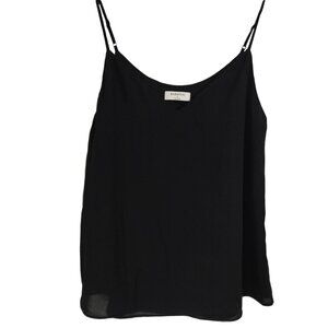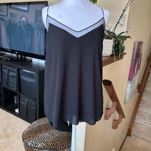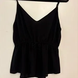 Chic black camisole with V-neck. Delicate straps and cinched waist. Perfect for versatile styling.