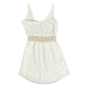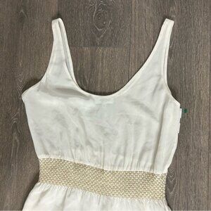 Aritzia Babaton Blythe Mini Dress Silk Off White sleeveless smocked waist XXS