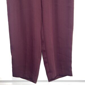 A light silky feel, these polished burgundy pants are sure to complete your workplace look. features belt loops and pockets with flattering darting.