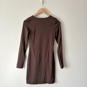 Aritzia Babaton Contour Crew Long Sleeve Mini Dress Scoop Neck Rich Mocha Brown