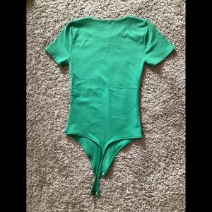 Babaton shortsleeve bodysuit in vibrant green colour. Regular length (recommended for heights 5’3” to 5’7”).