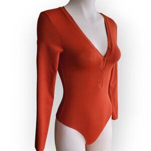 Aritzia Babaton Contour Orange Henley Bodysuit Size S