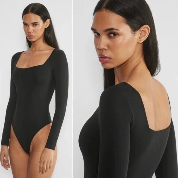 Aritzia Babaton Contour Square Neck Long Sleeve Black Classic Bodysuit Small