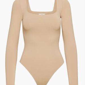 Aritzia Babaton Contour Squareneck Longsleeve Bodysuit, Size S, Colour Soft Tan
