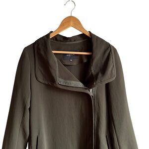 Aritzia Babaton Cormac Coat XS Olive Green Waterfall Drape Asymmetrical Zip