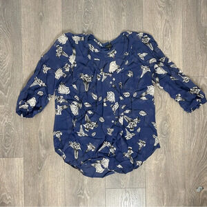 Aritzia Babaton Floral Blouse 3/4 length sleeve top buttons Purple Size Medium