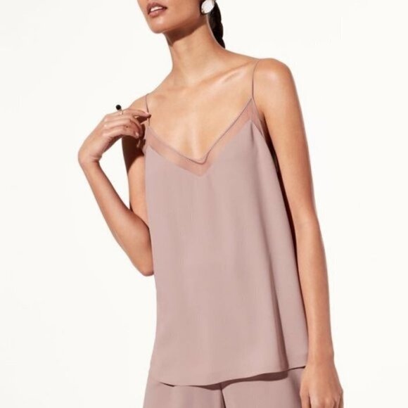 Aritzia Babaton Galen Camisole Mesh Top Baby Pink Nude Colour Size XXS