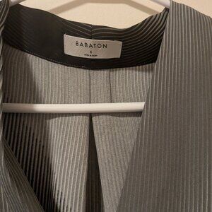 Aritzia Babaton Grey Black Stripe Power Blouse In Size Small