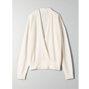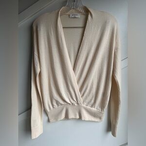 Aritzia Babaton Jotham Wrap Front V Merino Wool Ivory Sweater Top Size S