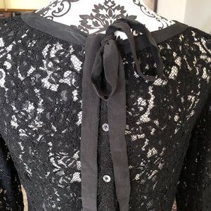 T.Babaton Aritzia black lace blouse with back ribbon and button down feature