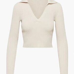 Aritzia Babaton Matte Pearl Sculp Knit Polo Long Sleeve Top Size M