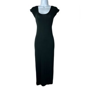 Aritzia Babaton Midi Dress Black Stretch Modal scoop neck Short Sleeve Size XXS