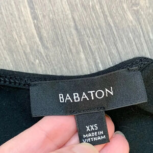 Elevate your wardrobe with this chic Aritzia Babaton Midi Dress in a classic black color. Made from stretch modal fabric, this dress offers a comfortable and flattering fit for a size XXS. The scoop neck and short sleeves add a touch of sophistication to this versatile piece that can be dressed up or down for any occasion. Whether you're heading to a brunch date or a night out with friends, this dress is the perfect choice. Add this stylish and timeless piece to your collection today and make a statement wherever you go.