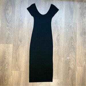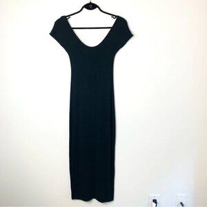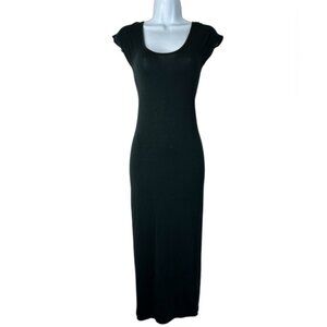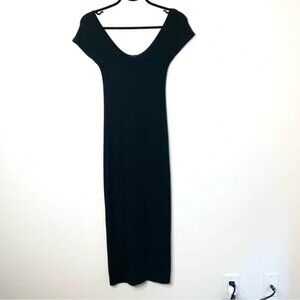 Aritzia Babaton Midi Dress Black Stretch Modal scoop neck Short Sleeve Size XXS