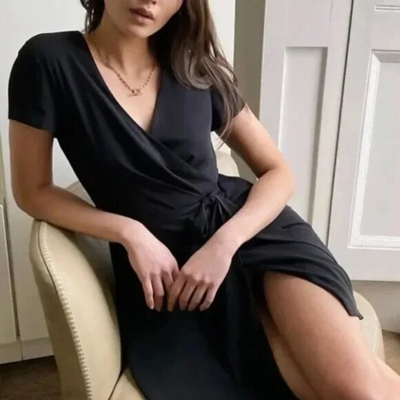 Aritzia Babaton Mini Wrap Wallace Dress Black Size Small