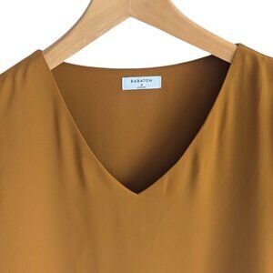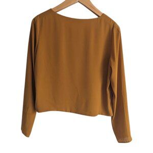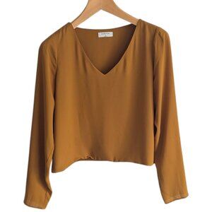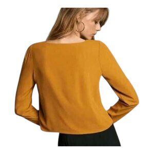 This is a long-sleeve version of Babaton’s classic, cropped, V-neck shell blouse. It's made with a drapey mustard yellow crepe fabric that stays looking polished all day.