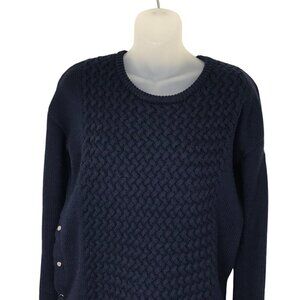 Aritzia Babaton Navy Blue Cable Knit 100% Merino Wool Crew Neck Sweater Size XS