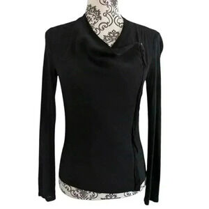 Aritzia Babaton Olivier Blouse Black Waterfall Front Jacket Top Women's size XS