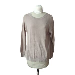 This crew-neck sweater by Aritzia's Babaton brand is made with fine, lustrous Mako cotton in beige that drapes off the body.