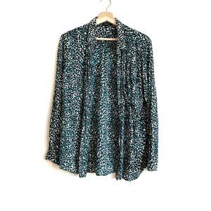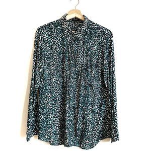 WHAT: Babaton forest green pattern button up blouse. Has pockets on both side, but is catalogue by the pattern. It's a loose fit.