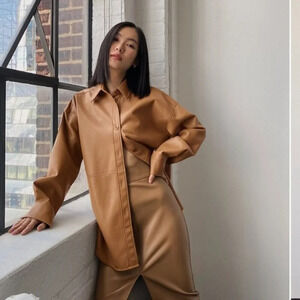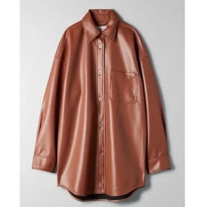 Aritzia Babaton Pelli Faux Leather Vegan Shirt Jacket Cognac Brown Size Large
